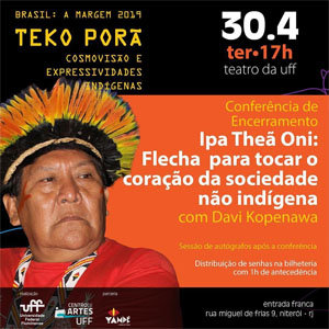 A Sociedade Indígena e Não indígena, recebeu dia 30/04/19, às 17:h, no Centro de Artes da UFF, na Rua Miguel de Frias – N.9, Icaraí em Niterói, Davi Kopenawa. Kopenawa é pajé e Líder espiritual e presidente da Associação Indígena yanomami. O evento Brasil a Margem - Teko Porã: Cosmovisão e Expressividades Indígenas, organizado pela UFF.