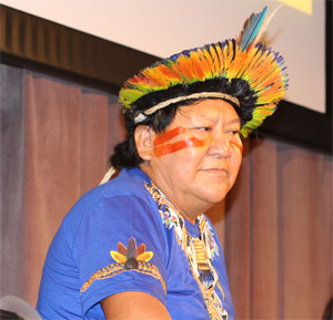 O povo da mercadoria vem se multiplicando e aumentando a população não indígena. E a poluição vem causando prejuízo para os índios e não índios. Vocês são brasileiros, nasceram nesse pais, e por isso que devem se preocupar com a natureza. As autoridades capitalistas vem destruindo a mãe terra. E vocês tem obrigação de cuidar, de pedir ao criador para proteger a terra, ou vocês esqueceram? Nós, povo Yanomami pedimos tudo a Omana”. Com relação ao Livro a Queda do Céu, Kopenawa disse que estava muito contente com as pessoas que estão lendo o livro. “Levei muito tempo para traduzir com Bruce Albert. |